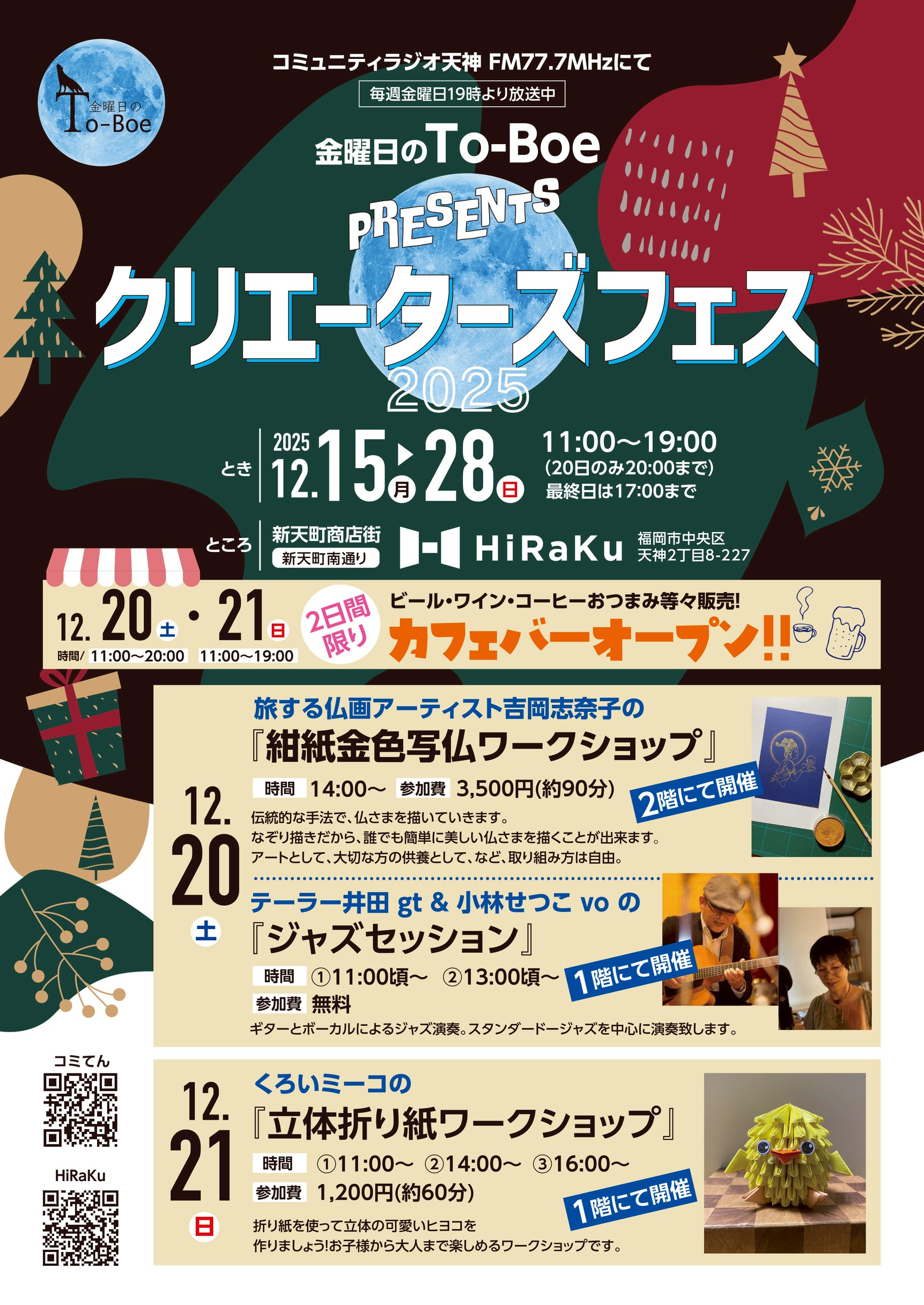 12月15日~28日までは、地元で活躍するたくさんのアーティストさん達を
